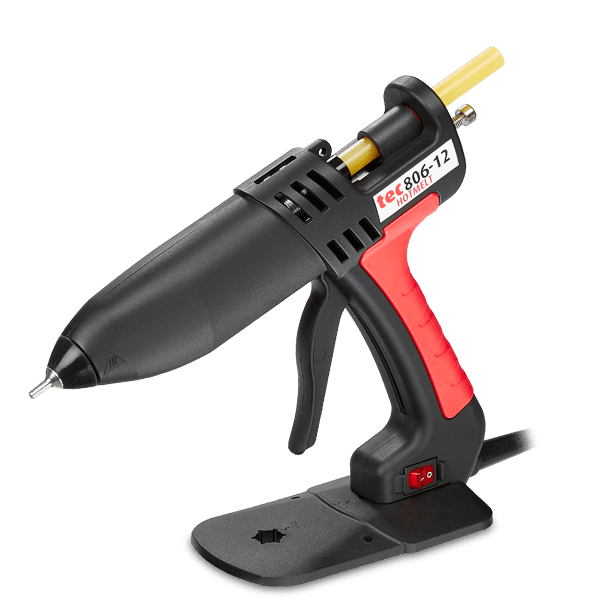 Low cost medium size industrial 12mm (½”) glue gun, eco heater chamber design for low power consumption, robust & easy to use. Medium output, 3 minute warm-up time & illuminated on/off switch.