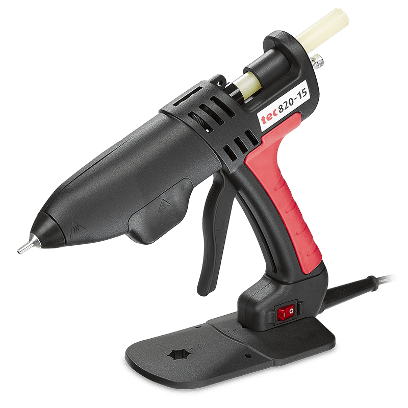 Adjustable temperature, heavy duty medium size 15mm (5/8″) glue gun. Robust and easy to use, fast recovery, medium output, 2 minute warm-up time & illuminated on/off switch.